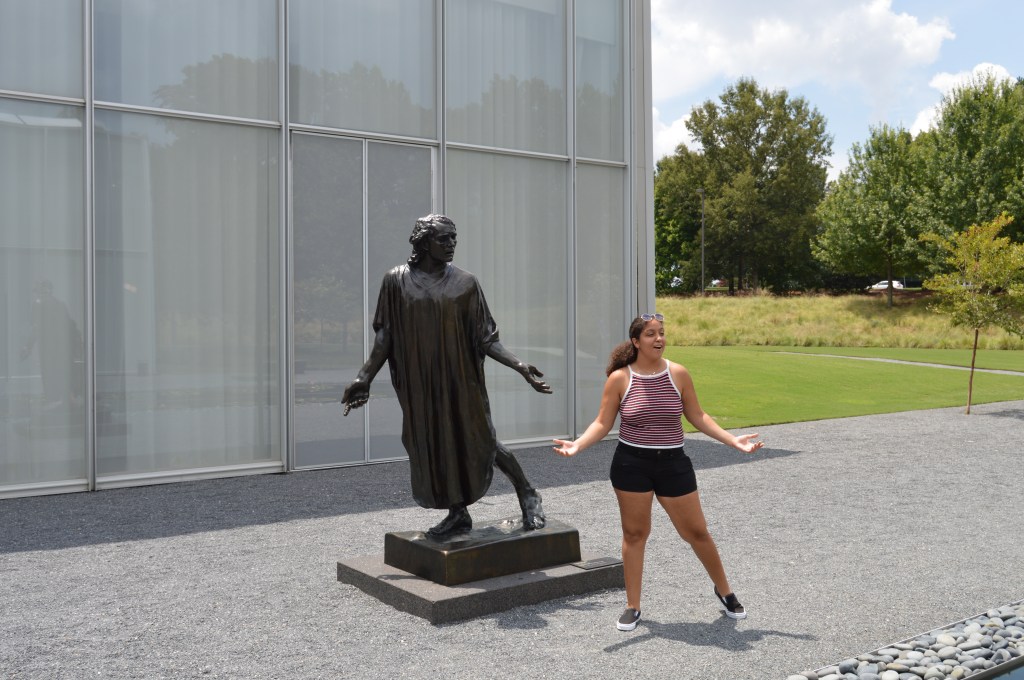 My friend Jen and I went to the North Carolina Museum of Art in Raleigh today. We spent the afternoon meandering around the museum, looking at artwork, eavesdropping on people’s conversations, and trying to copy the artworks’ poses.