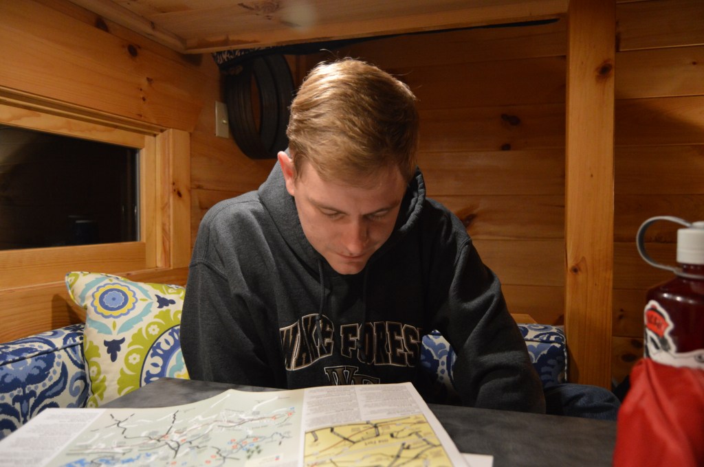 Manning scrupulously looks over the trail guides