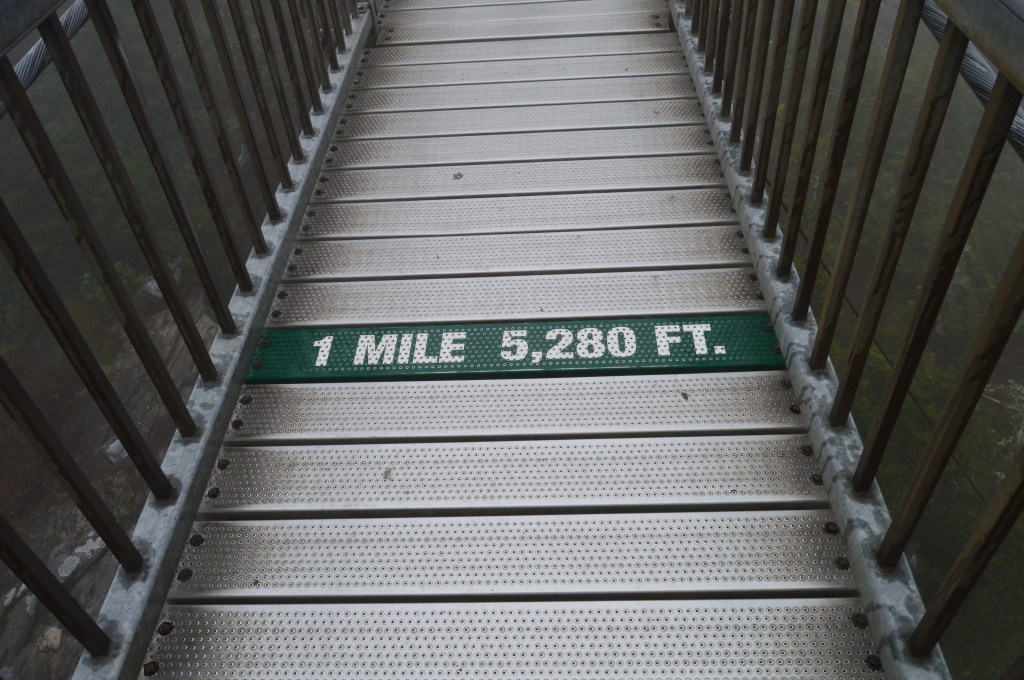 Once you reach the top of Grandfather Mountain, you can cross the mile high swinging bridge